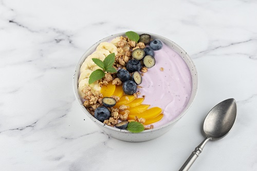Ingredients: 1 cup plain Greek yogurt ½ cup mixed berries (blueberries, strawberries, raspberries) 2 tbsp granola or oats 1 tbsp chia seeds or flaxseeds 1 tbsp chopped nuts (almonds, walnuts, etc.) Drizzle of honey or maple syrup (optional)