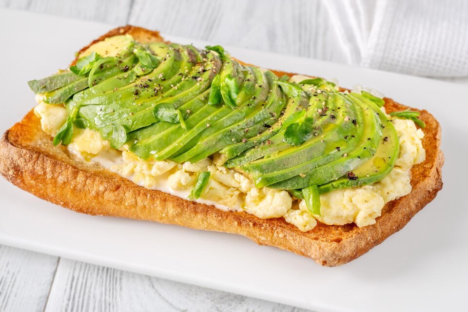 Ingredients: 1 ripe avocado 2 eggs 2 slices of whole-grain bread Salt and pepper to taste Chili flakes or lemon juice (optional) Olive oil or butter for cooking