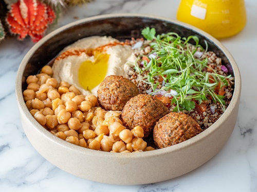 ½ cup cooked quinoa ½ cup canned chickpeas (rinsed & drained) ¼ avocado, sliced ½ cup cherry tomatoes, halved ¼ cup shredded carrots ¼ cup cucumber slices A handful of spinach or kale 1 tbsp tahini or hummus 1 tsp olive oil Juice of ½ lemon Salt, pepper, paprika (optional)